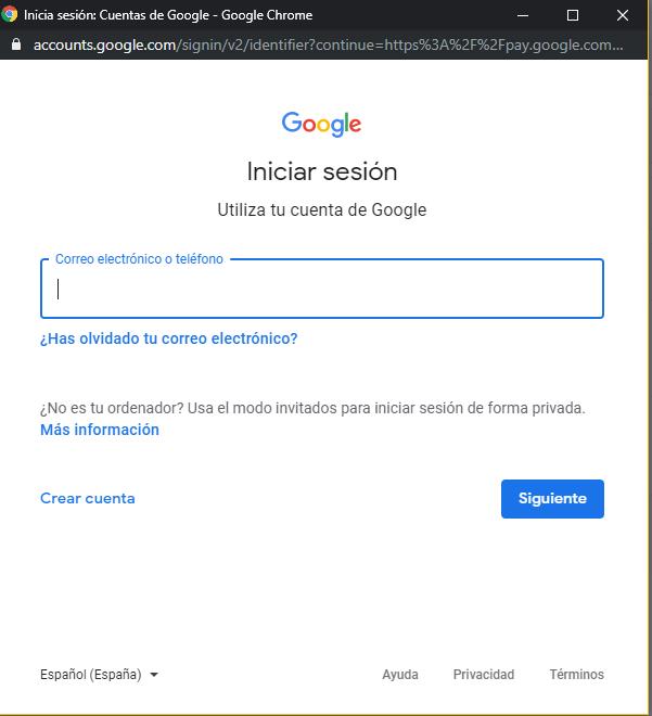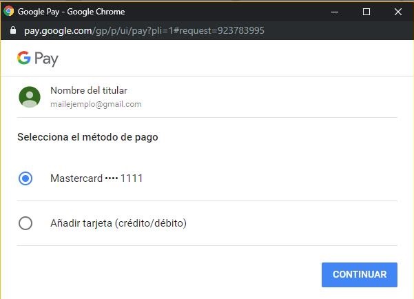 Al pulsar sobre él, se solicitará el login en la cuenta de Google (si es necesario) y se procederá a seleccionar el medio de pago con el que realizar el pago: